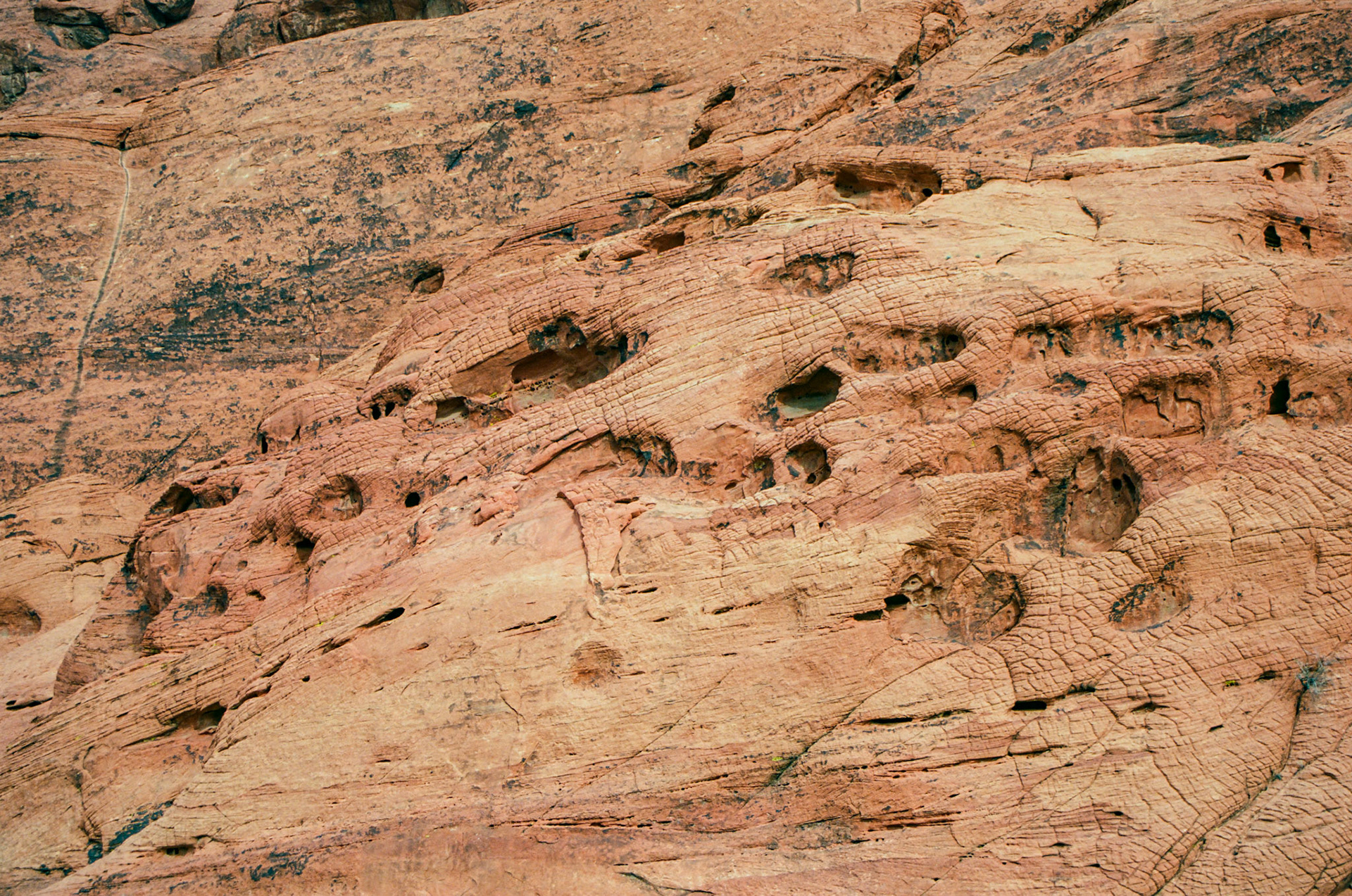 Nevada, USA (35mm) Las Vegas was built on the idea of the American Dream. A "city" built from scratch in the middle of bare desert where money can buy you the ultimate human-made experiences. There you can find many inviting holes for a gambling addict to drawn without a rescue tube in sight, stages dominated by singers on the downhill of their musical career, magicians performing the most extravagant shows of deception on earth, shiny naked legs twisting and turning for thirsty repressed eyes in windowless structures, and even an Eiffel Tower mini replica with a big square building awkwardly shoved between its legs. But it is only on the far west side of this sincere exhibit of human condition that you can find the best magic show in town. Below is a leaflet.
